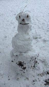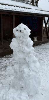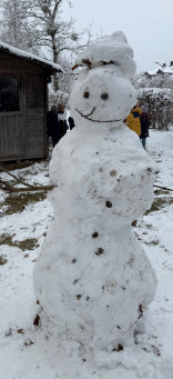Es hat geschneit in Oberpframmern! Die Pause wurde genutzt, um zahlreiche riesige Schneemänner zu bauen. So macht Pause Spaß!